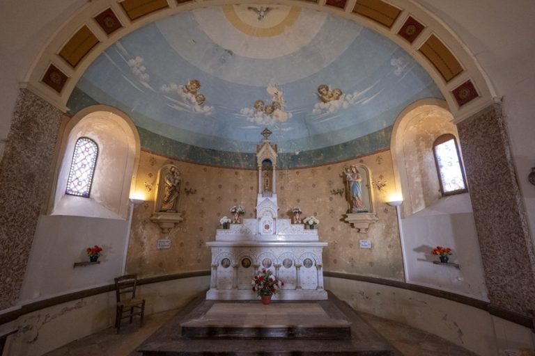 The site of Beffery is incontestably the seat of a very old habitat. At the end of the 13th century, mention is made of two brothers called “Amanevus and Bernardus de Becferri”. During the religious wars, the church suffered greatly from Huguenot vandalism during the religious wars. The interior of the church has only one nave, entirely vaulted, without aisles. At the end of the nave, sits a statue of Saint Etienne. In the choir, a white marble altar stands out against the circular background of the building. The vault was painted by the Italian painter Mazutti. In a blue sky, three choirs of angels seem to watch over the earth, while, at the very top, a dove seems to imbue it with the divine spirit. Two windows illuminate the whole. Do not hesitate to go around the church you will discover a sundial at the back.