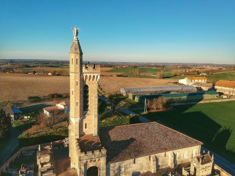 Saint Peter’s church dates from the 16th century, but was restored in the 19th century. Around 1896 a generous inhabitant of the region built a square-shaped bell tower, topped with a statue of the Sacred Heart and a platform from which visitors can enjoy an exceptional view of the Dropt Valley. A panoramic map and binoculars have recently been added to the viewpoint.