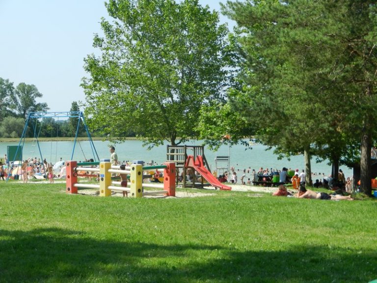 You will discover its sandy beach, the pleasures of a supervised swimming in summer from 2 p.m. to 7 p.m. by 2 lifeguards, a quality of water checked regularly, a diving board, a water slide, pedal boats, canoes, fishing, a beach volleyball court, a tennis court, basketball hoop, a playground for children, a snack bar, a pétanque court, picnic areas, barbecues, shaded parking .. Swimming in accordance with European standards. Pavillon Bleu label.