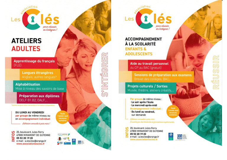L'association "Les Clés" vous propose différents ateliers pour adultes et enfants : Ateliers socio-linguistiques - Alphabétisation - Mise à niveau et perfectionnement des savoirs de base - Aide aux devoirs et ouverture culturelle dès le CP. Accessible dès 6 ans. Accueil en français et en anglais. Cours de FLE pour les personnes étrangères.