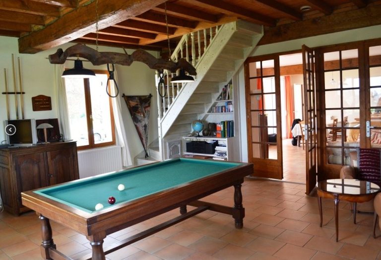 Superficie : 180m². Tout confort, cuisine équipée, salle à manger, espace salon (insert), salle de billard, 3 ch. (2 lits140, 2 lits 90), salle de bains, wc. Grande terrasse équipée. Terrain clos de 1 Ha. Bois de cheminée, chauffage central gaz. Possibilité ménage. Piscine privative.