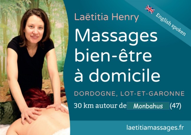 Massages à domicile et en entreprise dans le nord du Lot-et-Garonne et sud Dordogne (30 km autour de Monbahus).