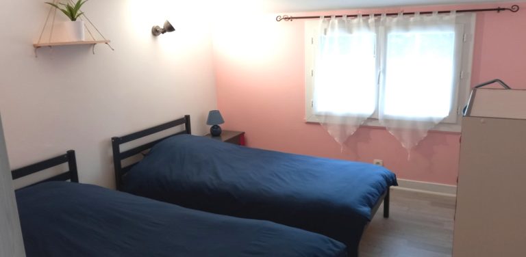 Maison de 70m² avec entrée indépendante, comprenant un salon avec cuisine équipée, deux chambres avec 1 lit (160x200), une troisième chambre avec 2 lits (90x190), une salle de bain avec douche et baignoire, WC indépendant. Un espace jardin avec salon de jardin sous pergola et un brasero/barbecue. Terrain de pétanque. Piscine partagée en cours de construction.