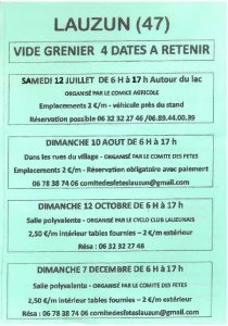 Venez nombreux chiner et donner une seconde vie aux objets présents lors du vide-greniers organisé par le Cyclo club de Lauzun.